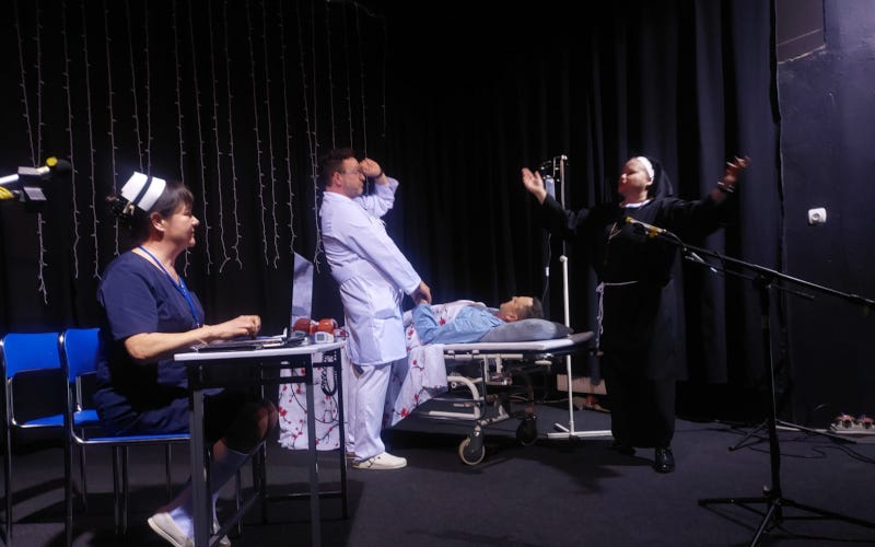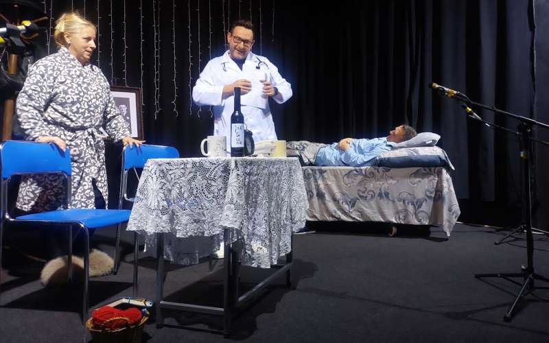 Spotkanie miało wyjątkową niespodziankę. Dyrektor szpitala Tomasz Kowalski zaprosił gości oraz pracowników szpitala na spektakl „Mąż umarł, ale już mu lepiej„, przygotowany przez terapeutów placówki. Spektakl został odebrany z wielkim entuzjazmem i nagrodzony gromkimi brawami. Już czekamy na kolejne tego typu przedstawienie!