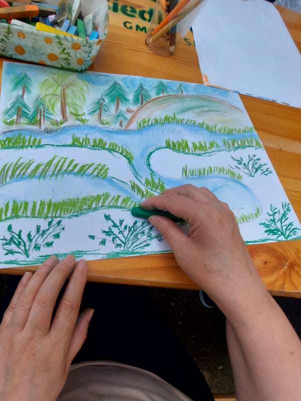 5 czerwca 2025roku w Ośrodku Rehabilitacji Psychiatrycznej Szpitala w Ciborzu dla naszych podopiecznych zorganizowaliśmy jak każdego roku plener malarski pt.”Letnie krajobrazy „.