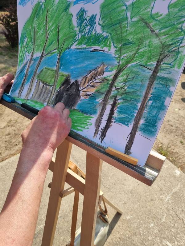Było to prawdziwe święto barw i kreatywności, które odbyło się w otoczeniu pięknej przyrody. Słońce, śpiew ptaków i świeże powietrze stworzyły idealne warunki do twórczej pracy i relaksu. Uczestnicy pleneru z entuzjazmem chłonęli inspiracje płynące z otoczenia. Na wszystkich uczestników pleneru czekały pyszne kiełbaski z grilla. Do zobaczenia za rok