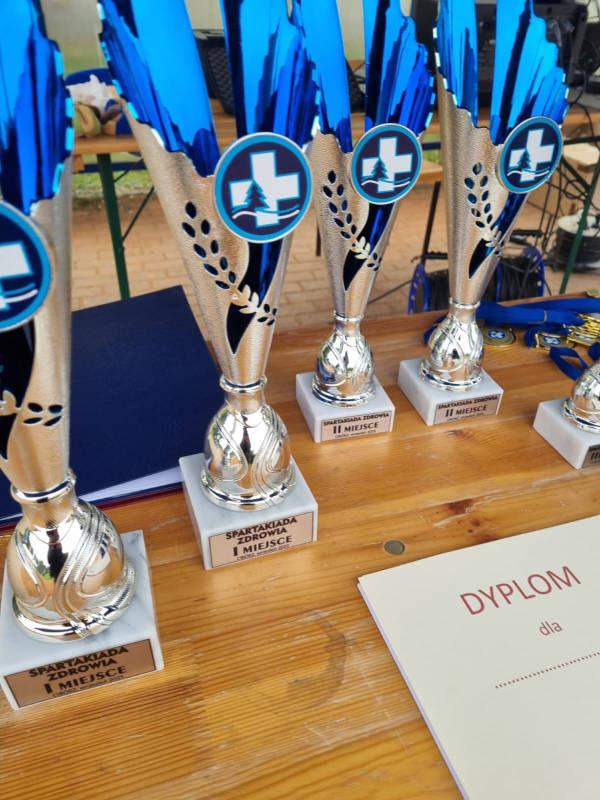 Finałowym i najbardziej uroczystym punktem programu była ceremonia wręczenia nagród. Zwycięskie drużyny, które zajęły czołowe miejsca, stanęły na podium i zostały nagrodzone pucharami za I., II., i III. miejsce. Trofea te, symbolizujące sportowy sukces i zdrowie, wręczył osobiście Dyrektor Szpitala, Pan Tomasz Kowalski.